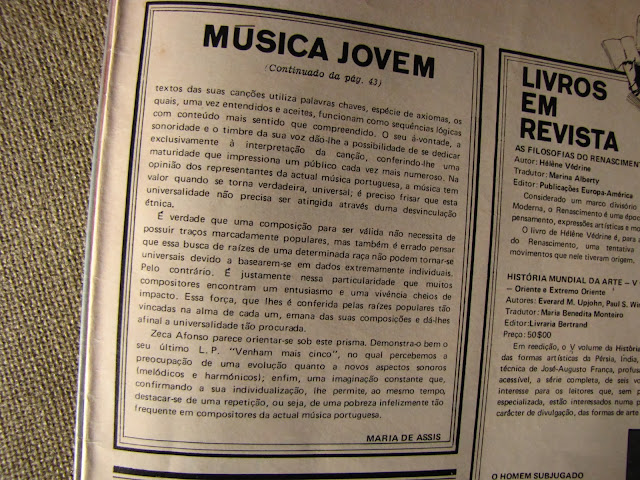 Mas, chegado o 25 de Abril de 1974, deu-se a politização de tudo ... E, às vezes, mais do que os temas urgentes, foi a urgência de afirmação política de alguns que queriam aparecer publicamente do lado do Poder Constituido (progressista, dizia-se). Não admira, portanto, que, num MODAS E BORDADOS, o tema, diria, central, tenha sido na circunstância ... nem modas nem bordados, mas ...
