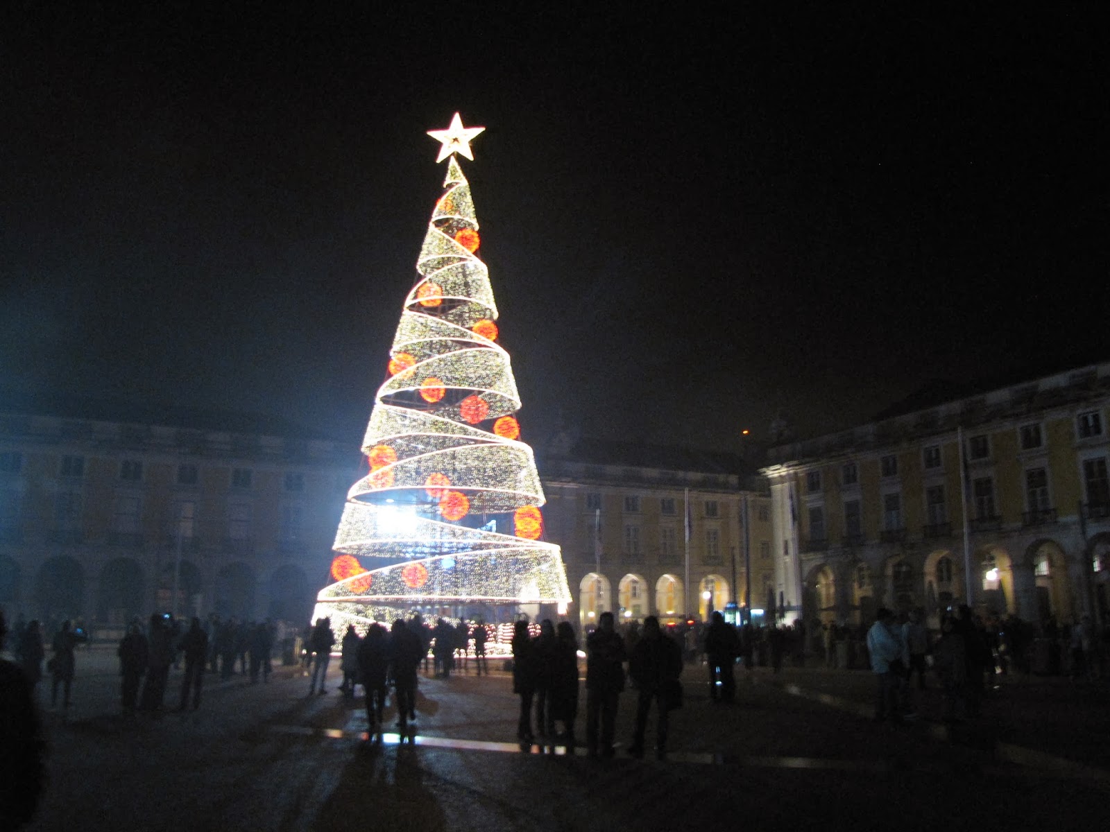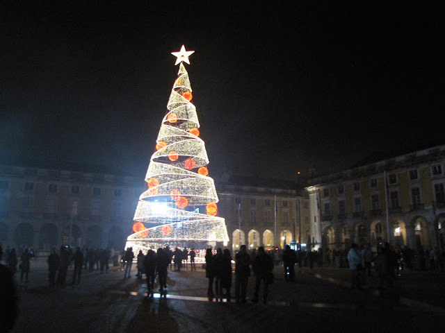 Inacreditável, a dificuldade em, depois de concluído o fogo de artifício, sair do Terreiro do Paço pela rua Augusta, em direcção ao Rossio, onde a multidão era tão compacta como a mancha negra da parte inferior desta fotografia ...